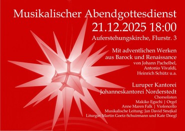 Advents-Konzert-Gottesdienst am Sonntag, 21. Dez. um 18:00 in der Auferstehungskirche
